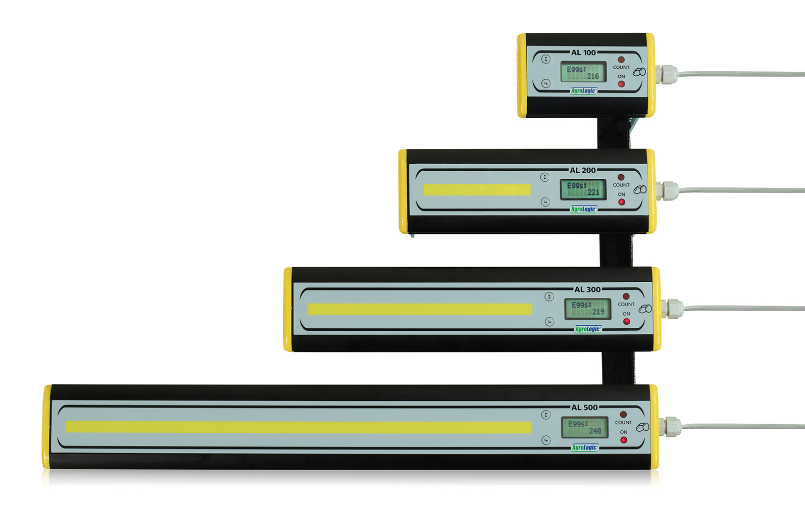Unlike conventional counters, which use LEDs and measure the intensity of reflected light, the AL Egg Counters use highly intelligent laser sensors which measure distance.
